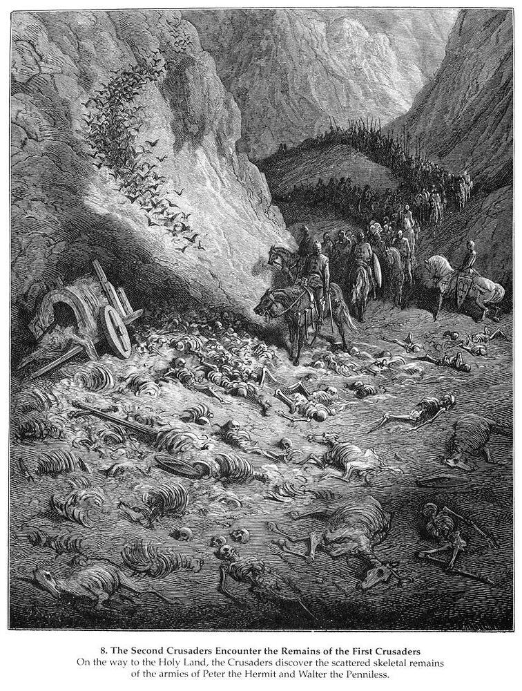 Nous vous proposons une reproduction artisanale sur toile du célèbre tableau 'L'armée de la deuxième croisade trouve les restes des soldats de' de Gustave Dore, provenant du Musée de la Reproduction.
