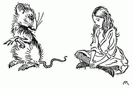 Nous vous proposons une reproduction artisanale sur toile du célèbre tableau 'Le mien est une histoire longue et triste! dit la souris, se tou' de Arthur Rackham, provenant du Musée de la Reproduction.