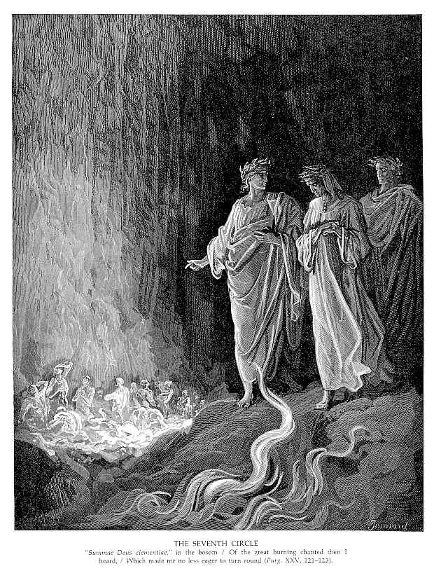 Nous vous proposons une reproduction artisanale sur toile du célèbre tableau 'Le septième cercle II' de Gustave Dore, provenant du Musée de la Reproduction.