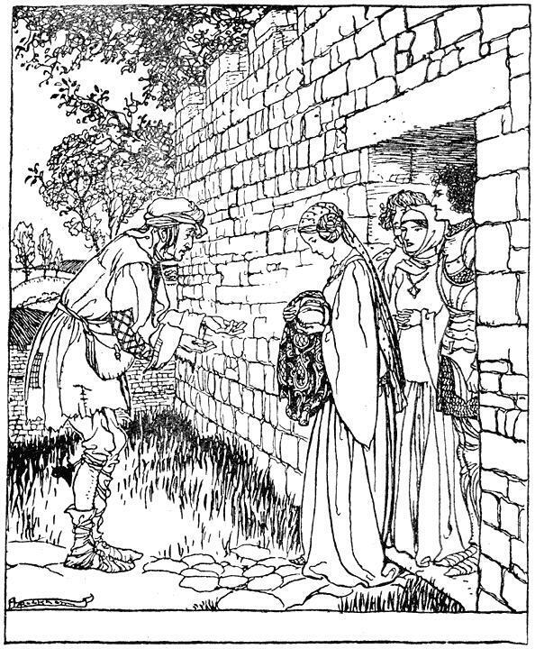 Nous vous proposons une reproduction artisanale sur toile du célèbre tableau 'L'enfant est rendu à Merlin' de Arthur Rackham, provenant du Musée de la Reproduction.