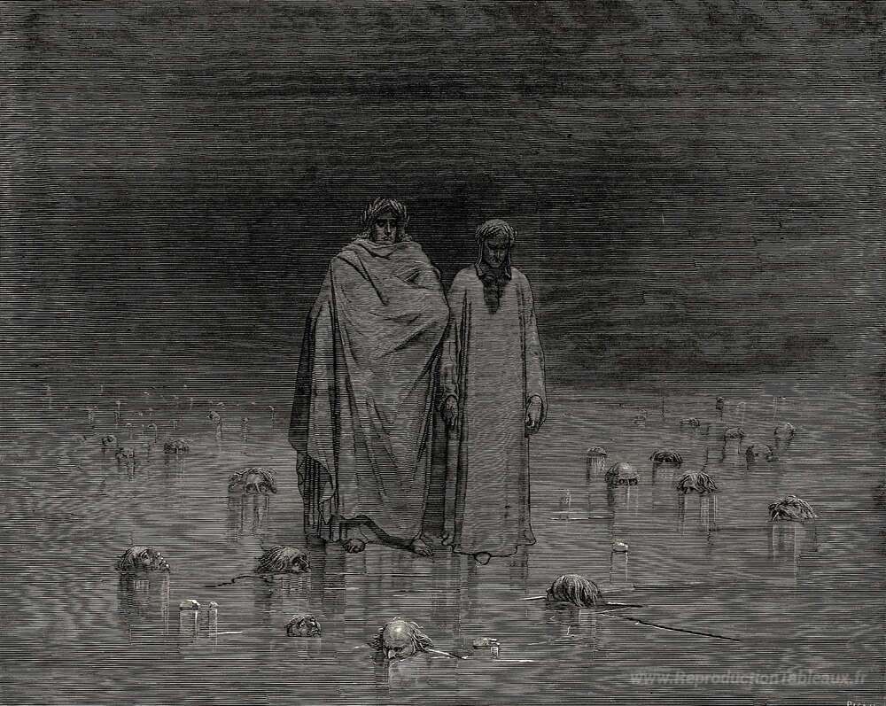Nous vous proposons une reproduction artisanale sur toile du célèbre tableau 'L'Infer, Canto 32' de Gustave Dore, provenant du Musée de la Reproduction.