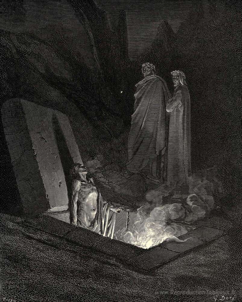 Nous vous proposons une reproduction artisanale sur toile du célèbre tableau 'L'Inferno, Canto 10' de Gustave Dore, provenant du Musée de la Reproduction.