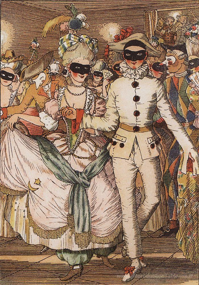 Intégrez cette œuvre d'art d'exception dans votre espace pour lui donner une touche d'élégance et de sophistication. La chaleur des couleurs et la finesse des traits apportent une dimension artistique unique à toute pièce, transformant votre intérieur en un sanctuaire de culture et de beauté. Optez pour Livre de la marquise. Illustration 8 et laissez-vous envoûter par l'univers poétique de Konstantin Somov.