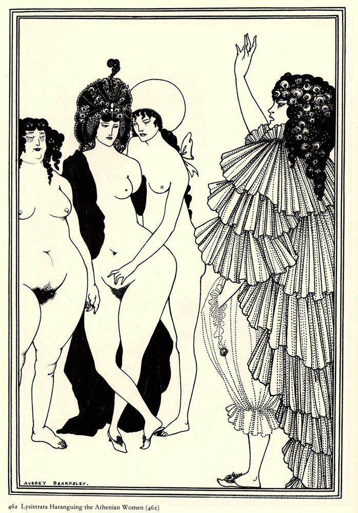 Nous vous proposons une reproduction artisanale sur toile du célèbre tableau 'Lysistrata haranguing les femmes athéniennes' de Aubrey Beardsley, provenant du Musée de la Reproduction.