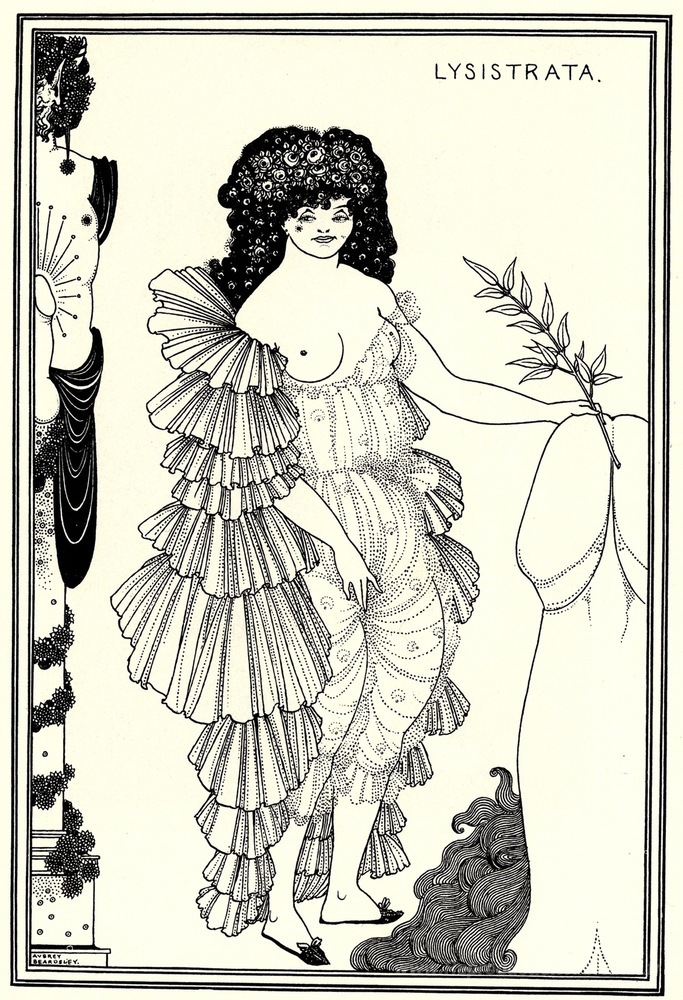 Nous vous proposons une reproduction artisanale sur toile du célèbre tableau 'Lysistrata se protégeant Coynte' de Aubrey Beardsley, provenant du Musée de la Reproduction.
