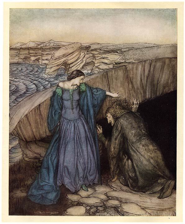 Nous vous proposons une reproduction artisanale sur toile du célèbre tableau 'Merlin est attirée par la mauvaise fée Vivienne dans sa maison' de Arthur Rackham, provenant du Musée de la Reproduction.
