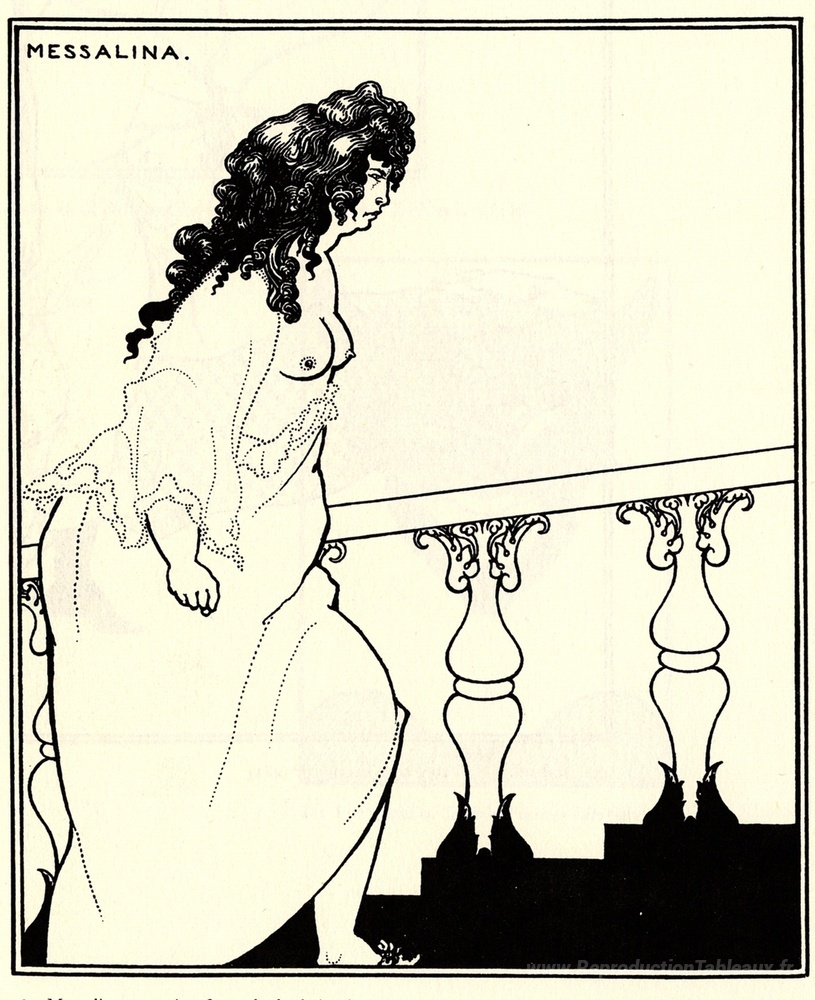 Nous vous proposons une reproduction artisanale sur toile du célèbre tableau 'Messalina revenant du bain' de Aubrey Beardsley, provenant du Musée de la Reproduction.