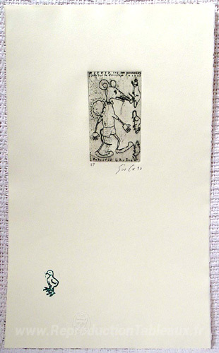 Nous vous proposons une reproduction artisanale sur toile du célèbre tableau 'Mickey' de Sue Coe, provenant du Musée de la Reproduction.