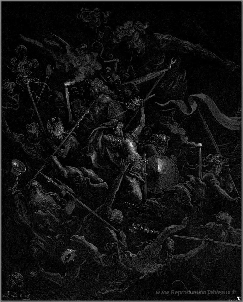 Nous vous proposons une reproduction artisanale sur toile du célèbre tableau 'paradis perdu' de Gustave Dore, provenant du Musée de la Reproduction.