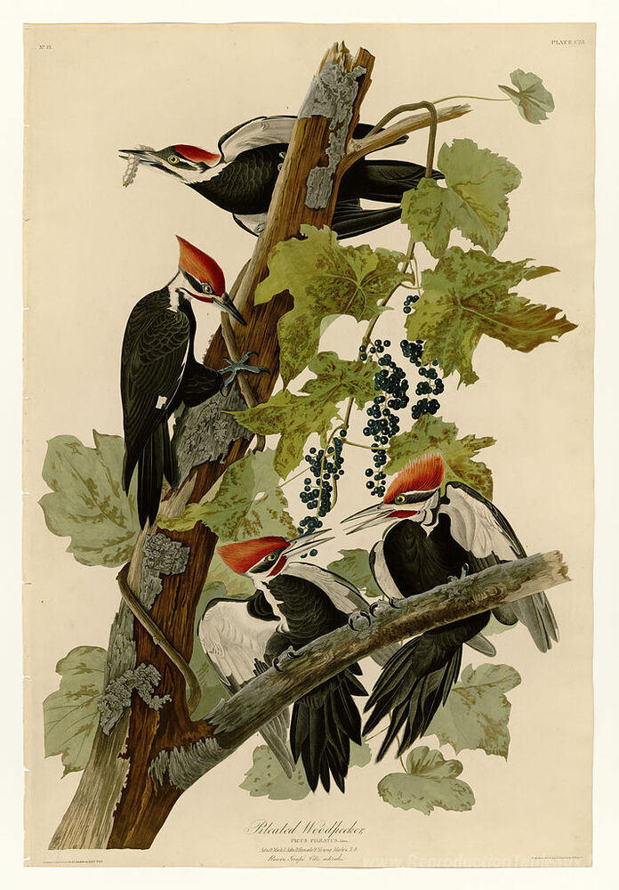 Nous vous proposons une reproduction artisanale sur toile du célèbre tableau 'Planche 111 pic pilié' de John James Audubon, provenant du Musée de la Reproduction.