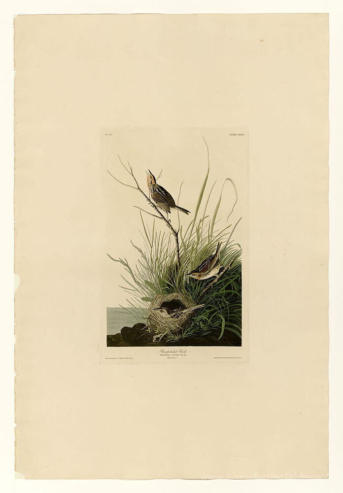 Les techniques élaborées d'Audubon révèlent une maîtrise des couleurs et une finesse d'exécution qui permettent de ressentir la grâce de l'animal dans son habitat naturel. En intégrant une telle pièce à votre intérieur, vous n'ajoutez pas seulement une œuvre d'art, mais aussi une touche d'élégance qui sublime vos espaces. Laissez-vous inspirer par la beauté intemporelle de Planche 149 pinson à queue tranchante et transformez votre environnement en une galerie d'art personnelle.