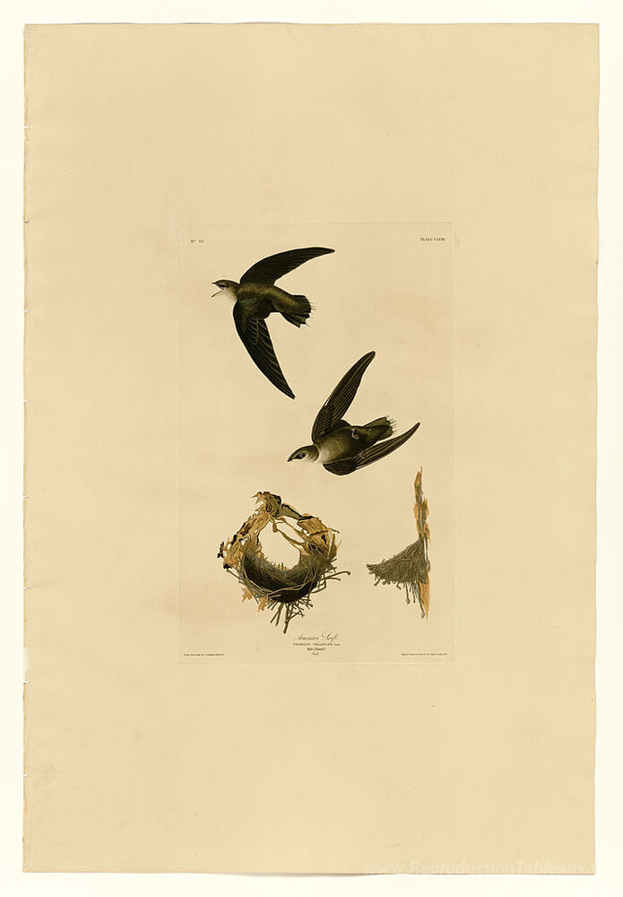 Nous vous proposons une reproduction artisanale sur toile du célèbre tableau 'Planche 158 American Swift' de John James Audubon, provenant du Musée de la Reproduction.