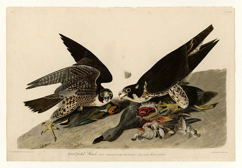 Nous vous proposons une reproduction artisanale sur toile du célèbre tableau 'Planche 16. Hawk à pied' de John James Audubon, provenant du Musée de la Reproduction.
