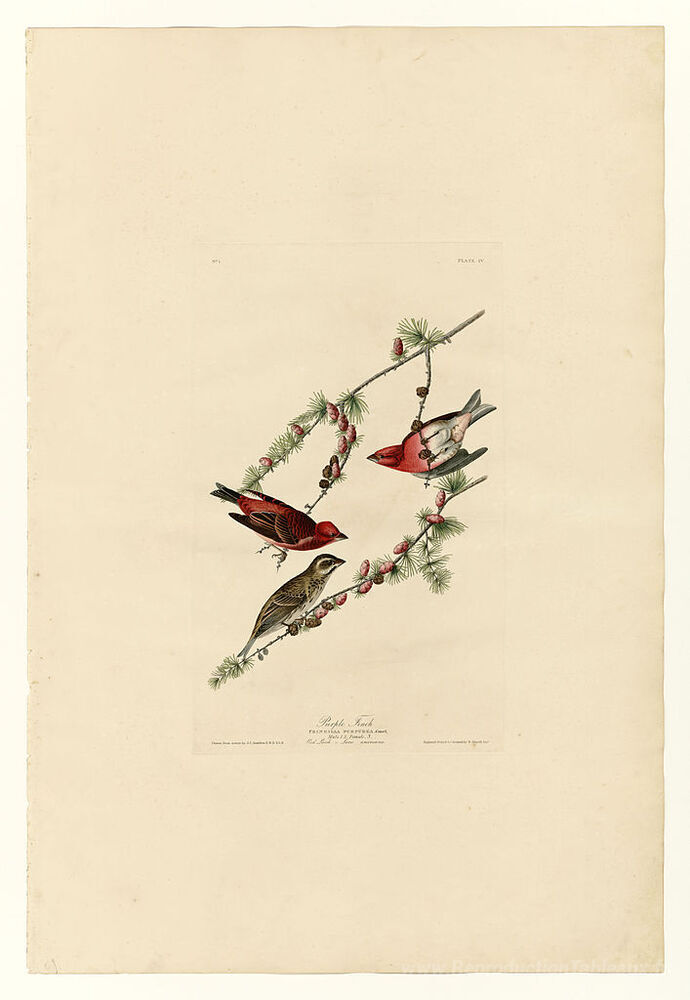 Nous vous proposons une reproduction artisanale sur toile du célèbre tableau 'Planche 4. Fin violet' de John James Audubon, provenant du Musée de la Reproduction.