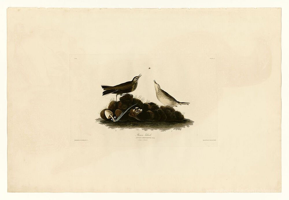 Nous vous proposons une reproduction artisanale sur toile du célèbre tableau 'Plaque 10. TitLark brun' de John James Audubon, provenant du Musée de la Reproduction.