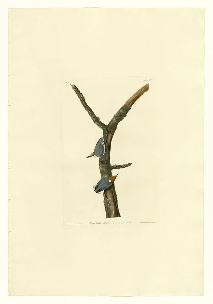 Nous vous proposons une reproduction artisanale sur toile du célèbre tableau 'Plaque 125 Autreuse à tête brune' de John James Audubon, provenant du Musée de la Reproduction.