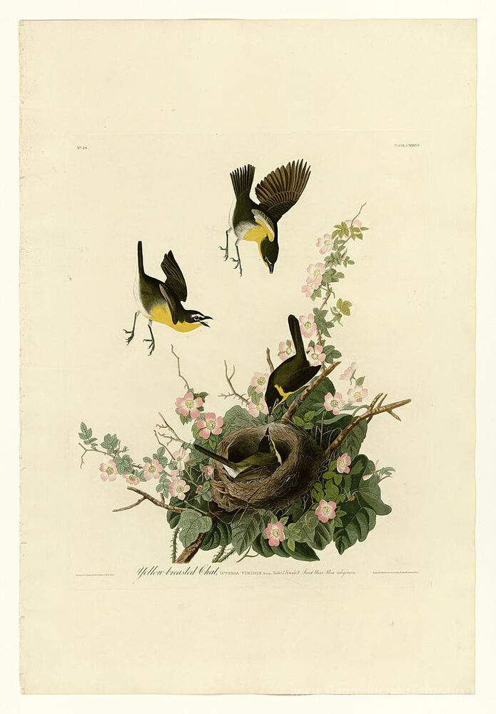 Nous vous proposons une reproduction artisanale sur toile du célèbre tableau 'Plaque 137 Chat à poitrine jaune' de John James Audubon, provenant du Musée de la Reproduction.