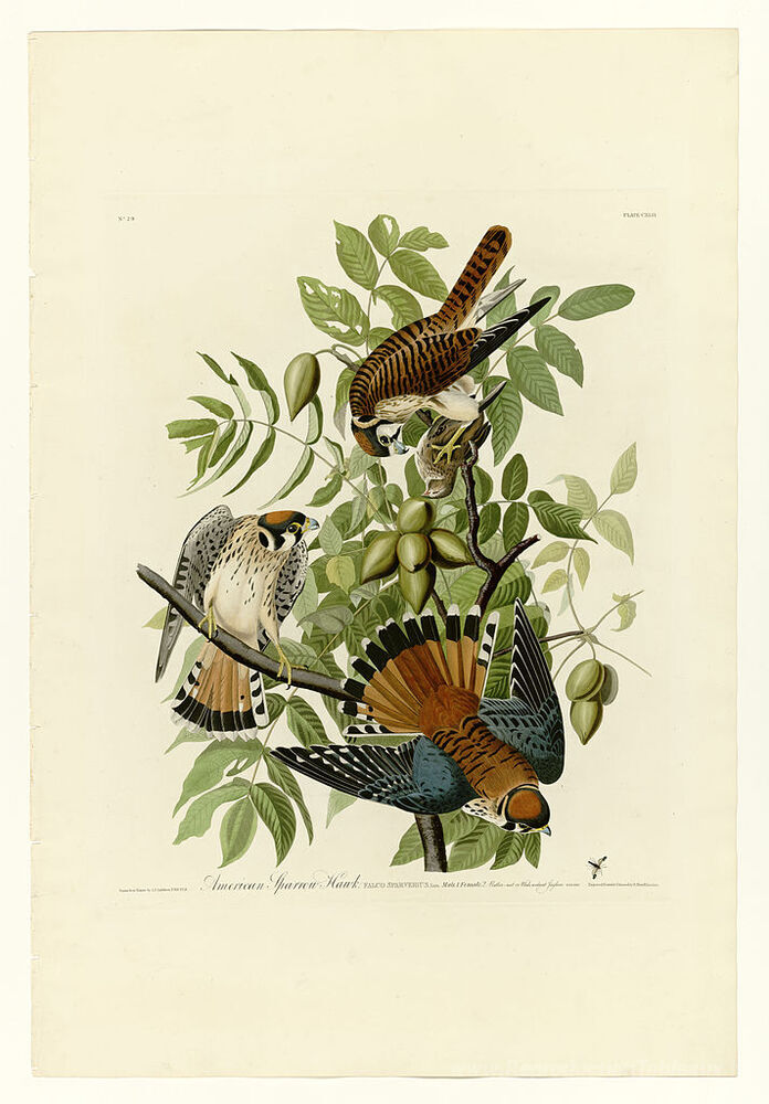 Nous vous proposons une reproduction artisanale sur toile du célèbre tableau 'Plaque 142 American Sparrow Hawk' de John James Audubon, provenant du Musée de la Reproduction.