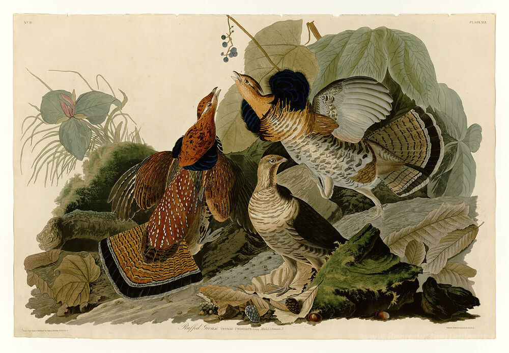 Nous vous proposons une reproduction artisanale sur toile du célèbre tableau 'Plaque 41. Grouse froissé' de John James Audubon, provenant du Musée de la Reproduction.