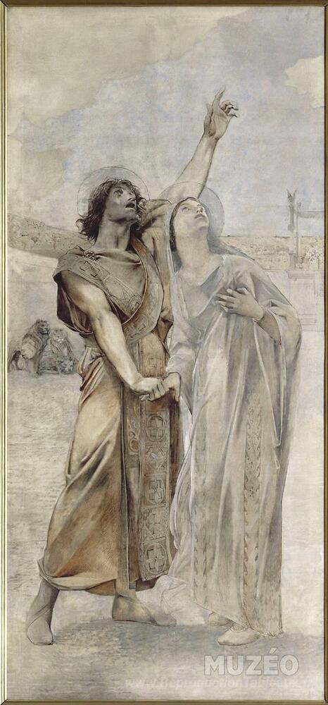 Nous vous proposons une reproduction artisanale sur toile du célèbre tableau 'Polyeucte et pauline' de Luc-Olivier Merson, provenant du Musée de la Reproduction.