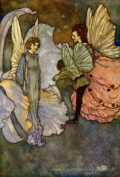 Nous vous proposons une reproduction artisanale sur toile du célèbre tableau 'Princess Orchid's Party - Illustration aux fées que j'ai rencont' de Edmund Dulac, provenant du Musée de la Reproduction.