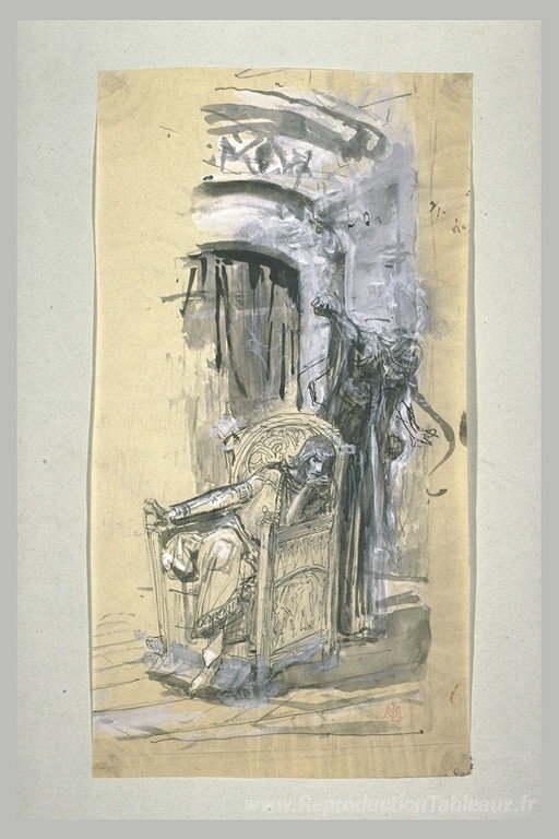 Nous vous proposons une reproduction artisanale sur toile du célèbre tableau 'Projet d'illustrazione versare Macbeth-7' de Luc-Olivier Merson, provenant du Musée de la Reproduction.