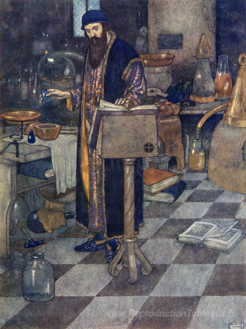 Nous vous proposons une reproduction artisanale sur toile du célèbre tableau 'Prospero en études secrètes - de la tempête' de Edmund Dulac, provenant du Musée de la Reproduction.