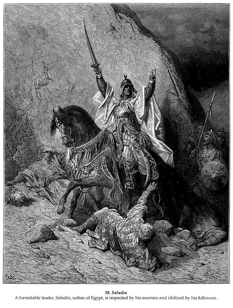 Nous vous proposons une reproduction artisanale sur toile du célèbre tableau 'Saladino' de Gustave Dore, provenant du Musée de la Reproduction.