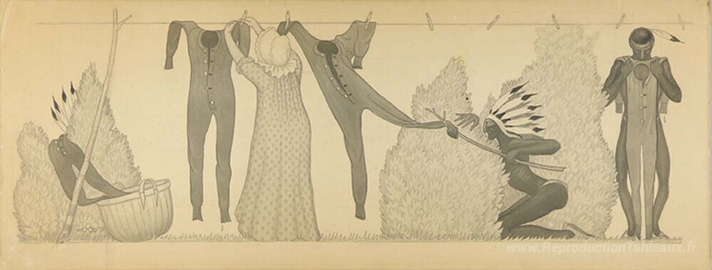 Nous vous proposons une reproduction artisanale sur toile du célèbre tableau 'Sans titre, de Suite Savage Iowa (corde à linge)' de Grant Wood, provenant du Musée de la Reproduction.