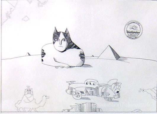 Nous vous proposons une reproduction artisanale sur toile du célèbre tableau 'Sphynx' de Saul Steinberg, provenant du Musée de la Reproduction.