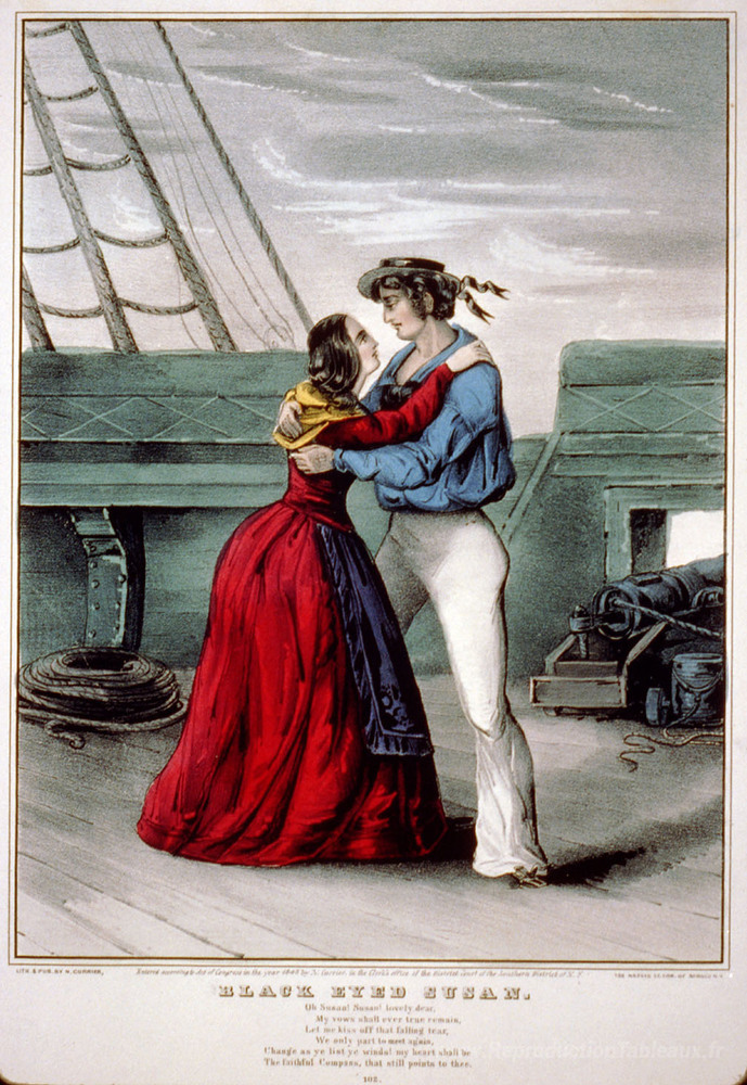 Nous vous proposons une reproduction artisanale sur toile du célèbre tableau 'Susan aux yeux noirs' de Currier and Ives, provenant du Musée de la Reproduction.