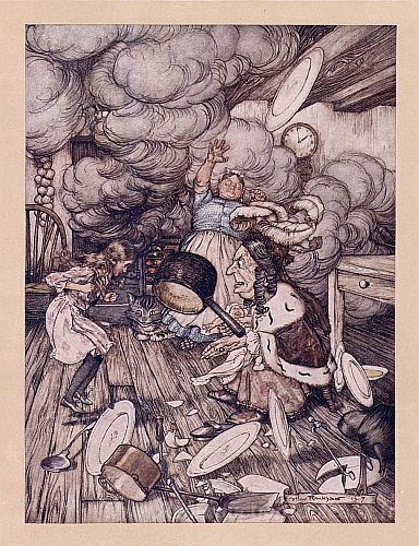 Nous vous proposons une reproduction artisanale sur toile du célèbre tableau 'Une casserole inhabituellement grande a volé à proximité et l'a ' de Arthur Rackham, provenant du Musée de la Reproduction.