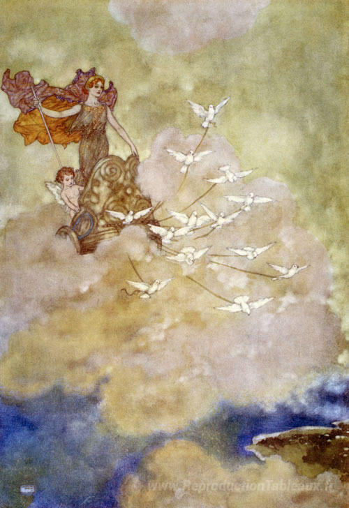 Nous vous proposons une reproduction artisanale sur toile du célèbre tableau 'Vénus dans son char - de la tempête' de Edmund Dulac, provenant du Musée de la Reproduction.