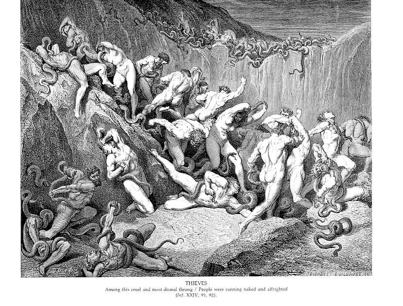 Nous vous proposons une reproduction artisanale sur toile du célèbre tableau 'Voleurs' de Gustave Dore, provenant du Musée de la Reproduction.