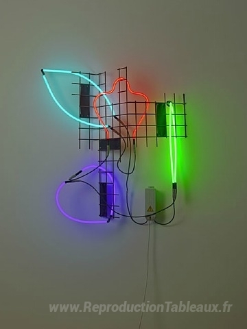 Nous vous proposons une reproduction artisanale sur toile du célèbre tableau 'Étude de Baumgate I' de Keith Sonnier, provenant du Musée de la Reproduction.