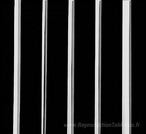 Nous vous proposons une reproduction artisanale sur toile du célèbre tableau '5 rectangles noirs sur blanc' de Gerhard von Graevenitz, provenant du Musée de la Reproduction.