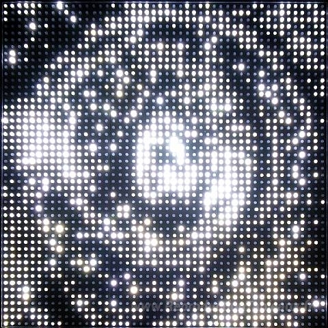 Nous vous proposons une reproduction artisanale sur toile du célèbre tableau 'Aire de jeux du diable' de Leo Villareal, provenant du Musée de la Reproduction.