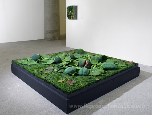 Nous vous proposons une reproduction artisanale sur toile du célèbre tableau 'Angurie' de Piero Gilardi, provenant du Musée de la Reproduction.