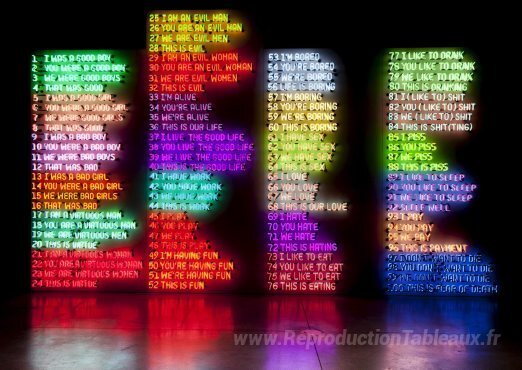 Nous vous proposons une reproduction artisanale sur toile du célèbre tableau 'Bon garçon, mauvais garçon' de Bruce Nauman, provenant du Musée de la Reproduction.