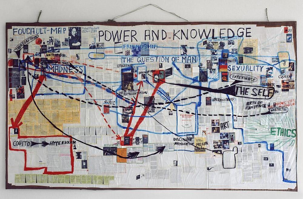 Nous vous proposons une reproduction artisanale sur toile du célèbre tableau 'Carte de Foucault' de Thomas Hirschhorn, provenant du Musée de la Reproduction.