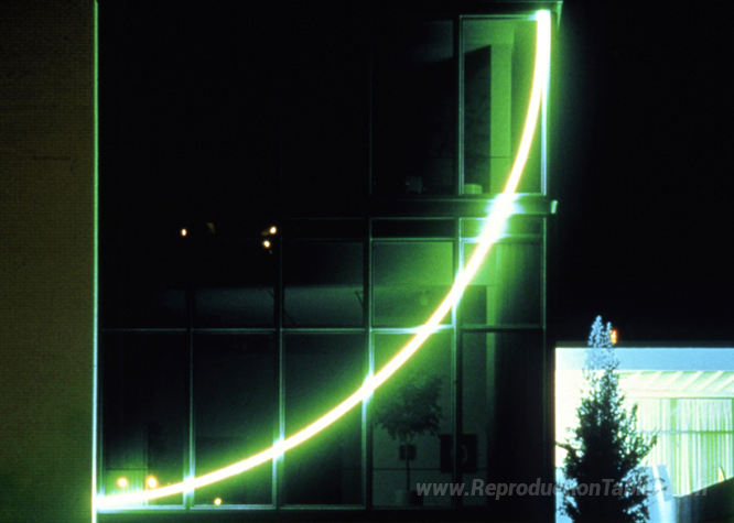 Nous vous proposons une reproduction artisanale sur toile du célèbre tableau 'Cercle incomplet néon vert' de Stephen Antonakos, provenant du Musée de la Reproduction.