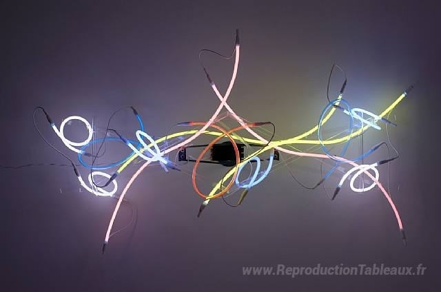 Nous vous proposons une reproduction artisanale sur toile du célèbre tableau 'Chandelier de salon New York' de Keith Sonnier, provenant du Musée de la Reproduction.