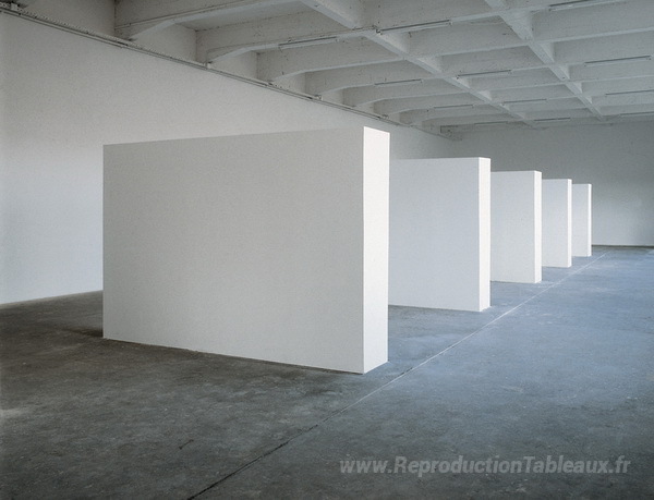 Nous vous proposons une reproduction artisanale sur toile du célèbre tableau 'Cimaise' de Olivier Mosset, provenant du Musée de la Reproduction.