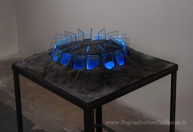 Nous vous proposons une reproduction artisanale sur toile du célèbre tableau 'Danse volcanique' de Laddie John Dill, provenant du Musée de la Reproduction.