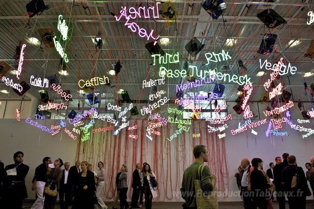 Nous vous proposons une reproduction artisanale sur toile du célèbre tableau 'De ma madinah: à la poursuite de mon ermitage…' de Jason Rhoades, provenant du Musée de la Reproduction.