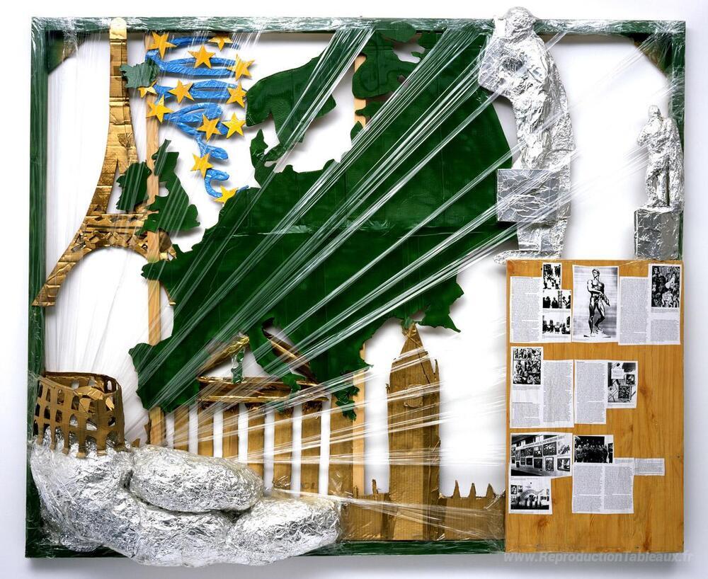 Nous vous proposons une reproduction artisanale sur toile du célèbre tableau 'Europa' de Thomas Hirschhorn, provenant du Musée de la Reproduction.