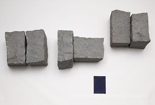Nous vous proposons une reproduction artisanale sur toile du célèbre tableau 'Grigi che sì alleggeriscono verso oltremare' de Giovanni Anselmo, provenant du Musée de la Reproduction.