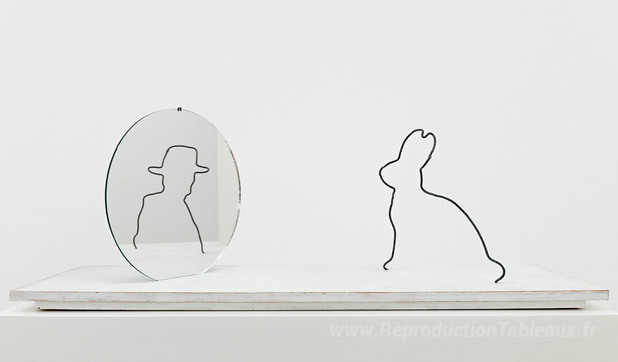 Nous vous proposons une reproduction artisanale sur toile du célèbre tableau 'Hasenspiegel' de Markus Raetz, provenant du Musée de la Reproduction.