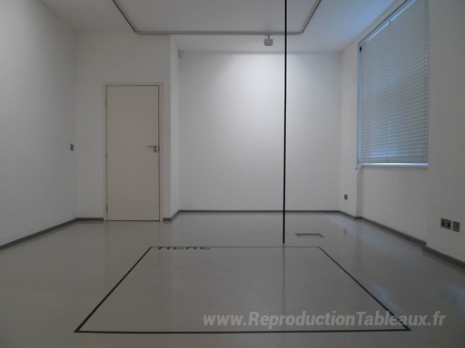 Nous vous proposons une reproduction artisanale sur toile du célèbre tableau 'Ici' de Peter Downsbrough, provenant du Musée de la Reproduction.