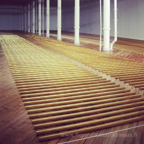 Nous vous proposons une reproduction artisanale sur toile du célèbre tableau 'Kilomètre cassé' de Walter De Maria, provenant du Musée de la Reproduction.
